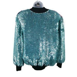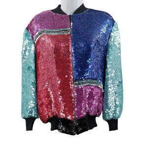 Vintage Dark Blue, Light Blue, Fuchsia, and Red Sequin Bomber Jacket | Circa 1980s-1990s | Size Small
