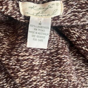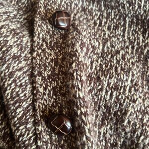 Incredible Rare Vintage Dark Brown & Cream Heather 100% Lambswool Button up Long cardigan W/ Accentuating Tie Belt by “kenji natural” made in Australia. Size M. Fits more like a small buttoned. Leather weaved buttons and ribbed, cuffed long sleeves.. #preppy #minimalist #lambswool #wool #chic