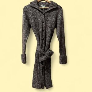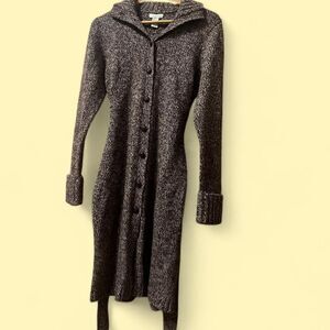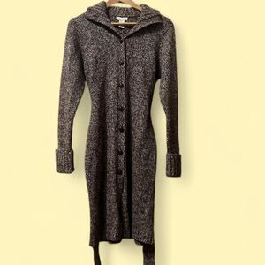 Vintage Dark Brown & Cream Heather 100% Lambswool Button Up Long cardigan W/Belt