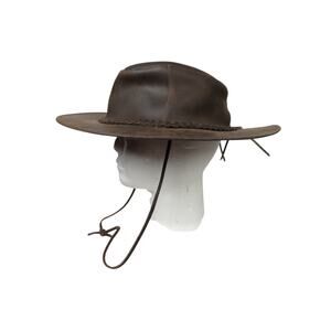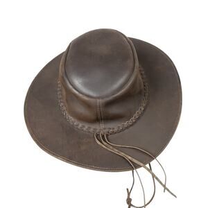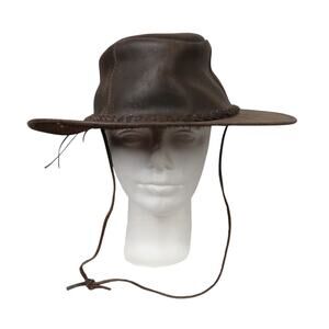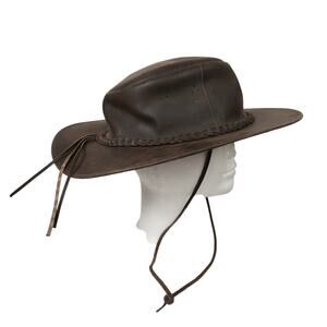 Vintage Dark Brown Leather Wide Brim Western Cowboy Rancher Hat