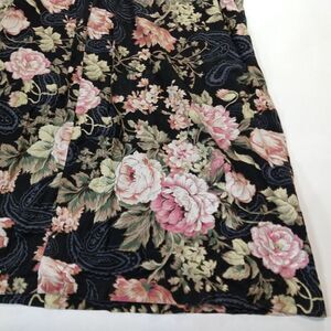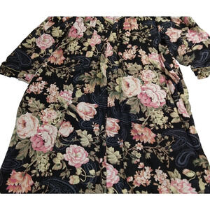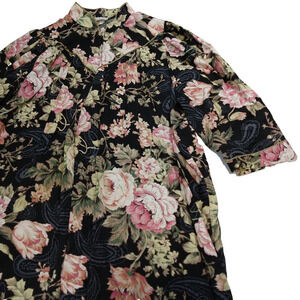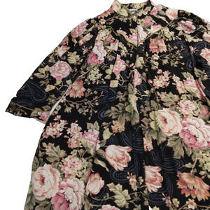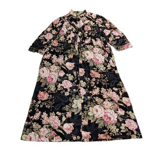 Vintage Dark Floral House Dress Size M L Black Cabbage Rose MuMu 1/2 Zip Kaftan