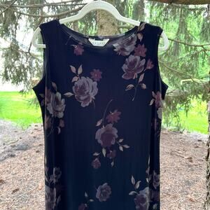 Black velvet knit with pink, purple, gold/tan and silver flower print