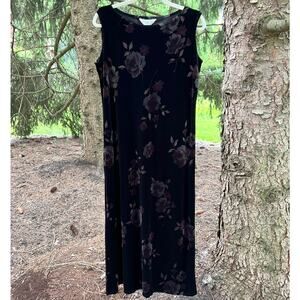Vintage Dark Floral Velvet Maxi Dress Large Black Stretch USA Fairy Whimsigoth