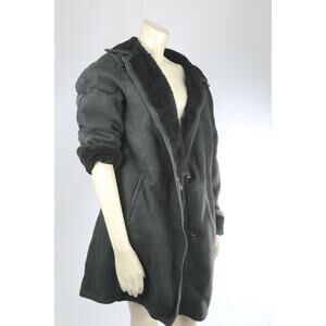 Vintage Dark Green Shearling Suede Coat Warm Winter Leather Trim Jacket Size M