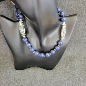 Vintage Dark Navy Blue Hard Plastic 28" Beaded Costume Fashion Jewelry Necklace