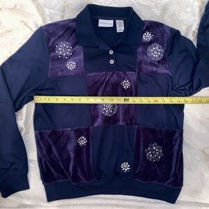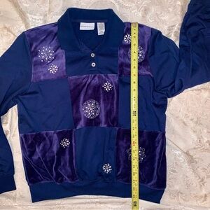 Vintage Dark Navy Blue & Purple Polo Style Sweatshirt & Velour Mix Top Medium
