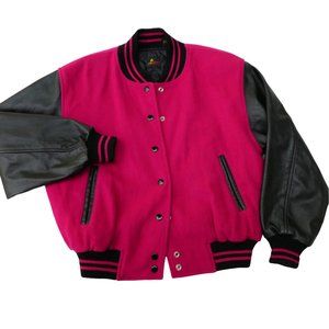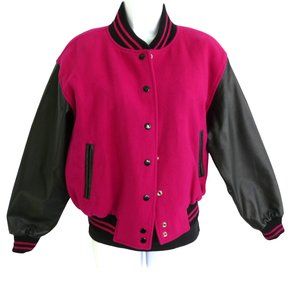 Vintage Dark Pink Wool Black Leather Letterman Varsity Bomber Jacket LizSport M