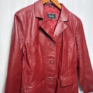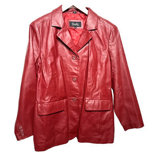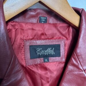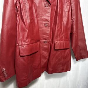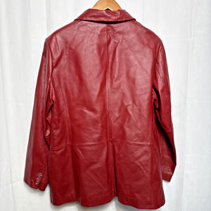 Vintage Dark Red Leather Jacket Women's XL Y2K Menswear Classic Flap Pockets EUC