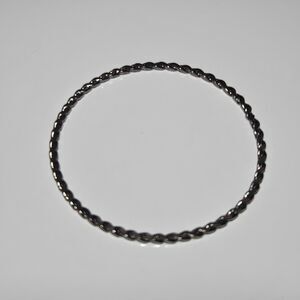 The Vintage Dark Silver Tone Flattened Twist Design Bangle Bracelet is a stylish and unique piece of jewelry. With a sleek bangle style and a stackable design, this bracelet offers versatility and sophistication. The dark silver tone gives it a timeless and elegant look, making it a perfect accessory for any outfit or occasion. The flattened twist design adds a modern twist to a classic piece, making it a statement piece for any jewelry collection.