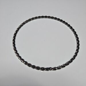 Vintage Dark Silver Tone Flattened Twist Design Bangle Bracelet 8.25"