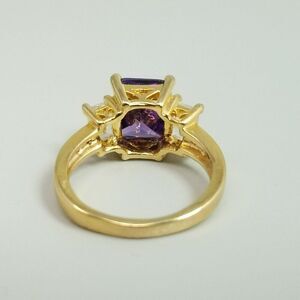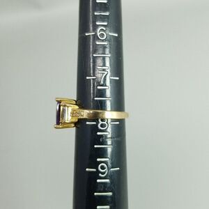 Vintage Dark Purple Rhinestone Ring, Size 8 Band, Gold Tone Setting, Estate