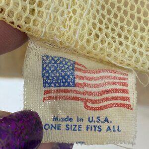 This vintage Darrell Waltrip Tide Racing snapback trucker hat features bold puffy print graphics of the #17 orange race car and classic Tide logo on the front. The mesh back in soft yellow pairs with a structured cream front panel and bill. Autographed with a printed Darrell Waltrip signature, this USA-made cap is a rare find for NASCAR collectors and retro racing fans. One size fits all with adjustable snapback closure.