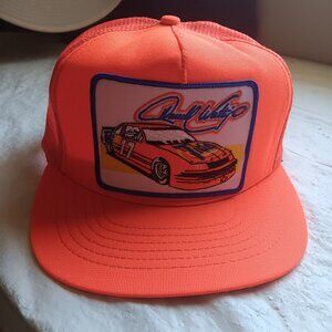 The Vintage Darrell Waltrip Tide #17 Nascar USA Trucker Hat is a classic piece of men's accessories that showcases American pride. Made in the United States, this adjustable snap-back hat features a mesh fabric with a canvas construction in the classic orange color associated with Tide. With a nod to the iconic Nascar racer Darrell Waltrip, this trucker hat is a timeless piece that is perfect for all seasons. Whether you're a fan of Waltrip or just love the USA theme, this vintage hat is sure to make a statement.