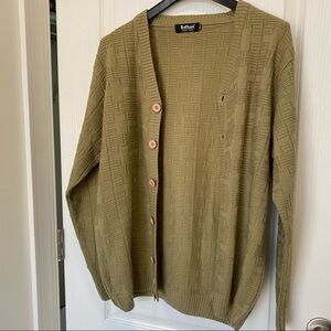 Vintage Datsun geometric print grandpa Cardigan and Vintage Sweater greenish tan button up