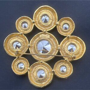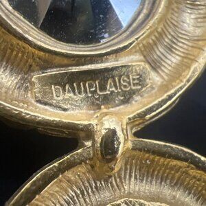 Vintage Dauplaise Brooch Royal Blue Aqua & Green Ravoli Rhinestones Cluster 3"