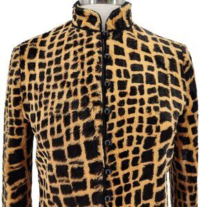 Vintage David Barr Faux Fur Retro Tan Black Fitted Button Jacket Women's Size 8