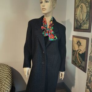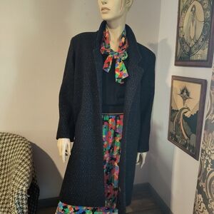 Vintage David Benjamin Long Coat Black Wool Medium 80s