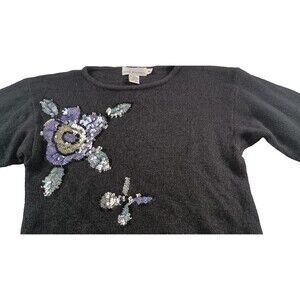 Vintage David Benjamin Womens M Sweater Black Blue Purple Sequined Pullover Silk