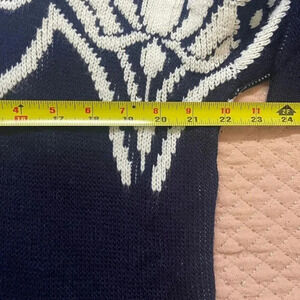 Vintage David Brett Women's Sweater M Blue & white Floral Mockneck retro y2k 80'
