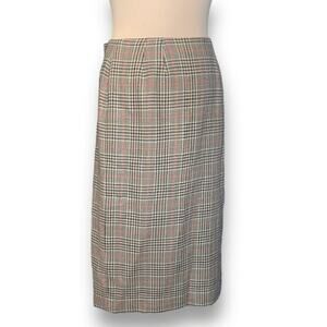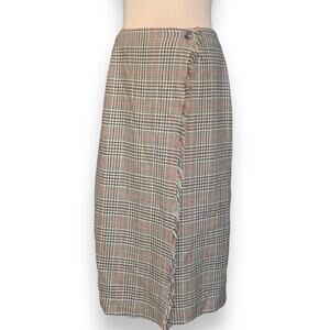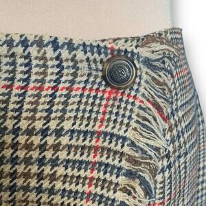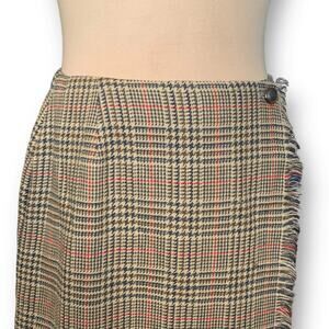 Vintage David Brooks Skirt Tan Houndstooth Plaid Fringe Detail Wool Wrap Maxi