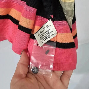 Vintage David Brooks Striped Cardigan - Pink, Black, Orange, Green, Cream