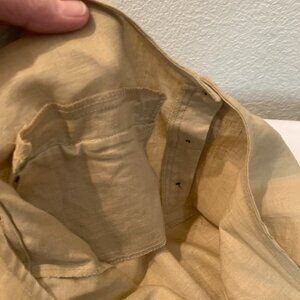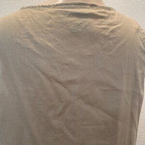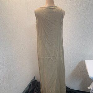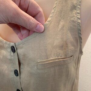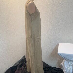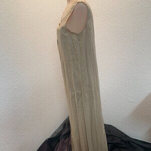 Beautiful lightweight linen dress is sleeveless and has 3 buttons at the neckline. Maxi length, this dress appears to be unworn. 100% linen, hand wash, made in China. Front left breast pocket is still stitched closed from the factory. Loose & breezy, like new condition. No wear shows at the hem. My mannequin is a size 4 for reference. Size P, please see measurements for fit.