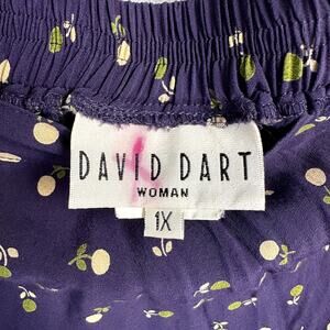 Vintage David Dart Midi Skirt 1X Purple Lemon Lime Pull On Elastic Waist USA