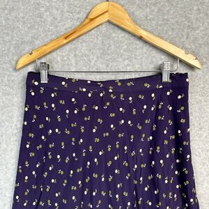 Vintage David Dart Midi Skirt Size 1X Purple Lemon Lime Fruit Print Pull On Elastic Waist