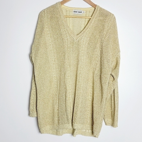 Vintage David David Cotton Blend Gold Metallic Thread Women's Sweater Size L