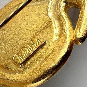 Vintage David Dubin 2.75" Gold-Tone Brooch W/ Purple & Pink Glass Cabochons