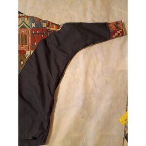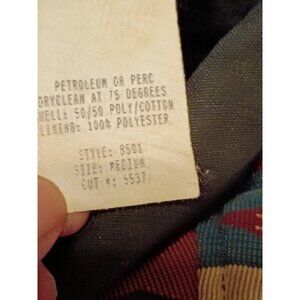 Vintage David James Lined Aztec Canvas Jacket Size Medium. It has light marks. It is tagged a size Medium. The sleeves seem short or maybe 3/4 sleeves?