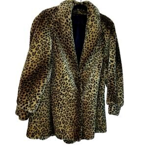 Vintage David Leinoff Mob Wife Old Money Faux Fur Leopard Print Swing Coat Sz 12