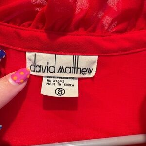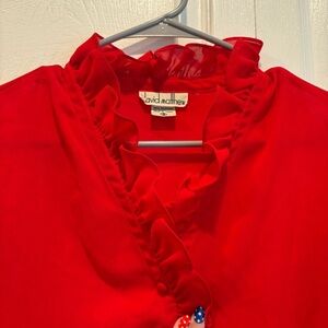 Vintage David Matthew Red Ruffle Button Up Blouse