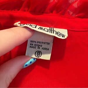 Vintage David Matthew Red Ruffle Button Up Blouse - Size 8