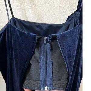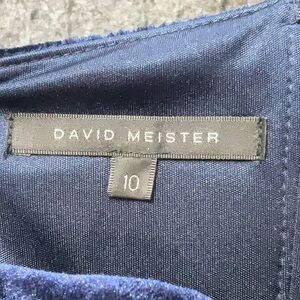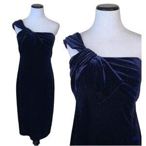 Vintage David Meister Navy Blue Velvet Bow One Shoulder Dress Size 10 Medium M