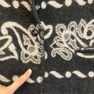 Good Pre-owned Condition- this is missing one button- I would recommend removing the other button and just replacing with two black buttons that match each other. No rips, stains, smells, or tears. This shows mild to moderate wash wear from normal use- there are some fuzzies scattered throughout, but it doesn't really affect the look as this is a naturally fuzzy piece. Please see photos for full condition description.