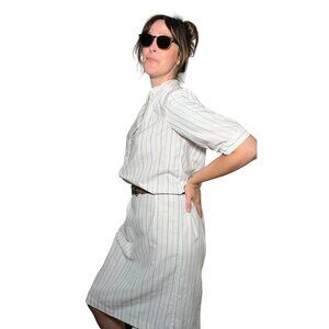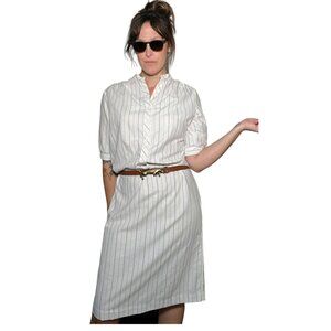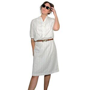 Vintage David Peet Shirt Dress Ivory Striped Cotton Blend Midi Classic Medium