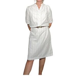Vintage David Peet Shirt Dress Cotton Blend Ivory Striped Classic Casual Medium
