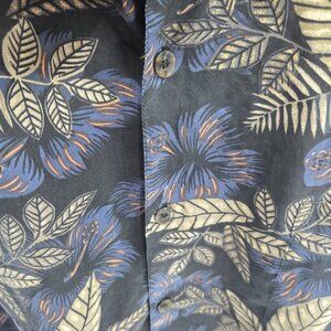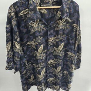 Vintage David Taylor Black Blue Hawaii Aloha Silk/Nylon Button Down Shirt XXL