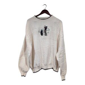 Vintage David Taylor Golf Sweater Mens XL Ivory Embroidered Textured Knit 90s
