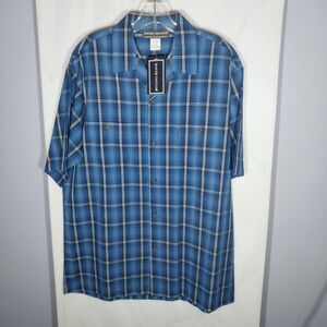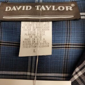 Vintage David Taylor Men's Casual Button-Up Shirt L Blue Plaid Short Sleeve USA