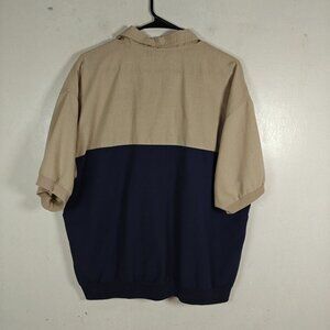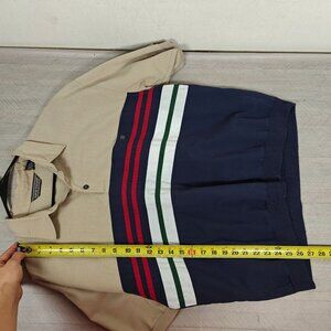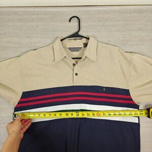 Vintage David Taylor Men's Large Polo Shirt Beige & Navy Striped Short Sleeve