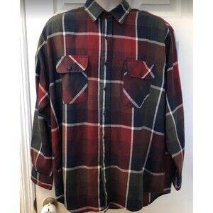 Vintage David Taylor Men's Plaid Long Sleeve Casual Button Up Collared Shirt XL. Shirt is vintage pre-owned. Please see all photos for visible condition. 100% acrylic. RN 15099. 2 front button pockets. From a pet friendly home. Small snag right upper arm area - see photo close up.