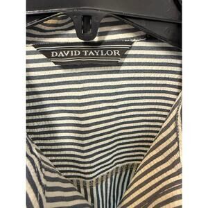 This is a pre-owned David Taylor men's polo shirt in size medium. It features a stylish striped pattern in gray and white.