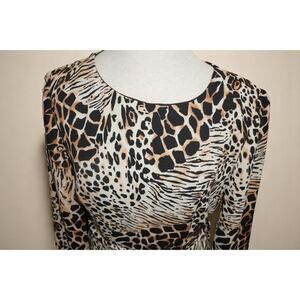 Vintage David Warren Animal Print Drape Dress Size 8 – Safari Glam Shoulder Pad