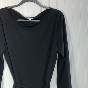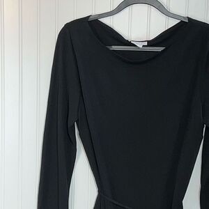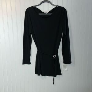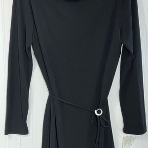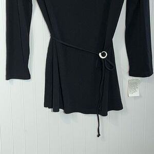Vintage David Warren New York Belted Tunic Womens 16 Black Long Sleeve Crew Neck