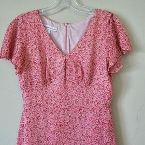 Vintage David Warren Womens Pink Floral Silk Midi Dress Y2K V-neck Size 4P 90s
