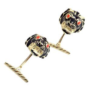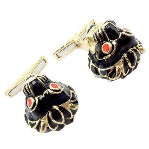 Vintage! David Webb 18k Yellow Gold Black Enamel Lion Cufflinks