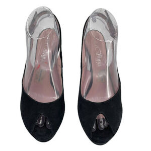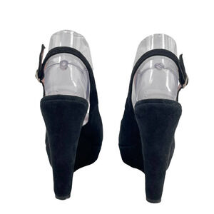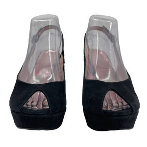 Vintage Davos Gomma Platform Wedge Heels Slingback Peep Toe Black Suede NEW 7.5