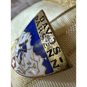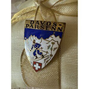 Vintage Davos Parsenn Switzerland Ski Resort Pin Badge With Enamel Shield Design